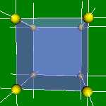 2x2x2 and 4x4x4 lattices. Cu, Au, Ag, Al, Pt, Pd have this structure. The Wigner-Zeitz cell for the FCC lattice is rhombic dodecahedron. |