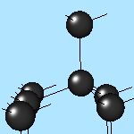 ![]() | Real crystals have broken (unoccupied) bonds on surface which may lead to surface reconstruction. (100) Si surface "before reconstruction". Gray and black balls show two FCC sublattices of Si. 2x1 reconstruction of (100) Si surface. |